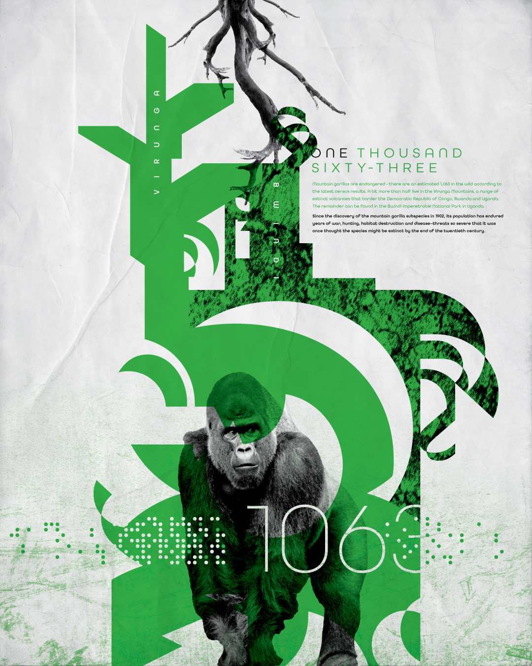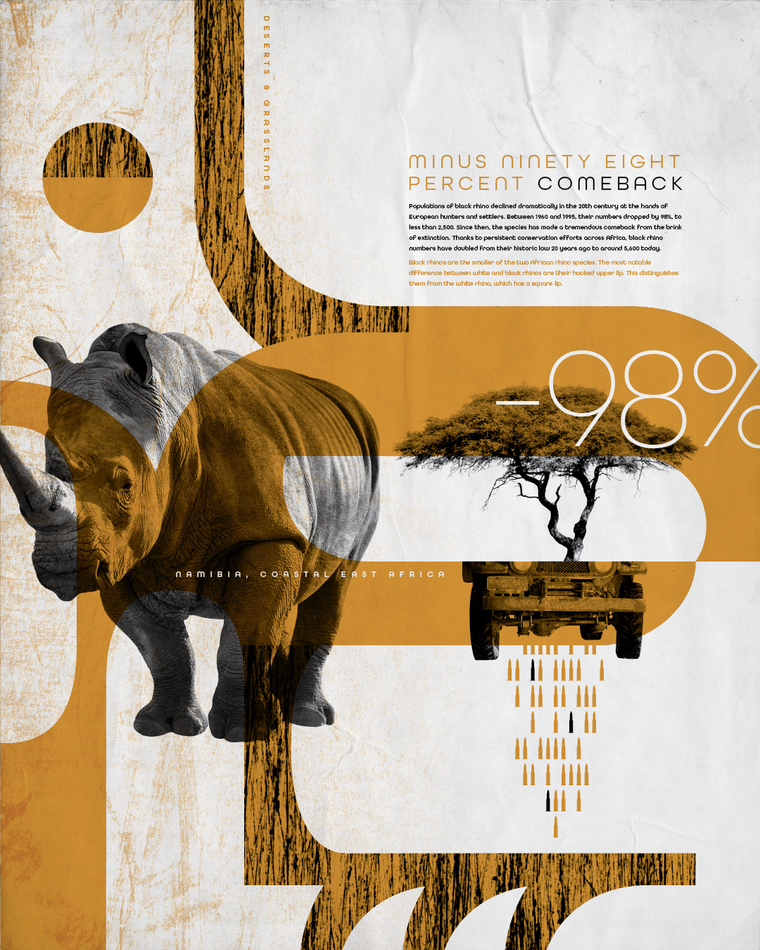 An illustration series on wildlife conservation, highlighting 3 species—their current and past vulnerabilities.