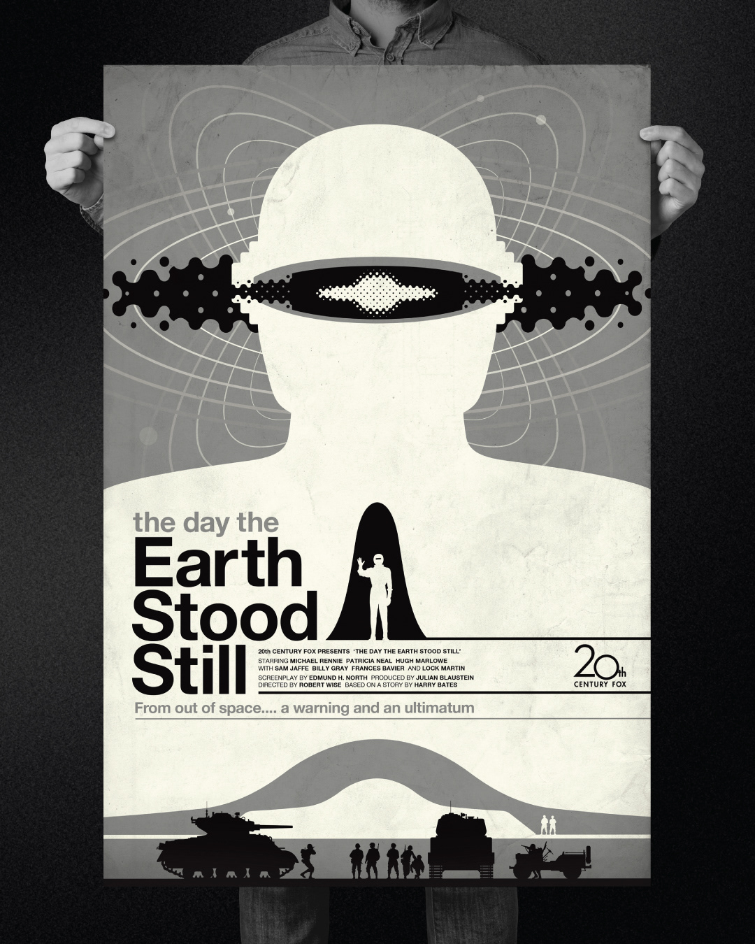 Working on a trio of posters for a few classic movies that I really love: The Day the Earth Stood Still (1951), Invasion of the Body Snatchers (1956), and Forbidden Planet (1956).