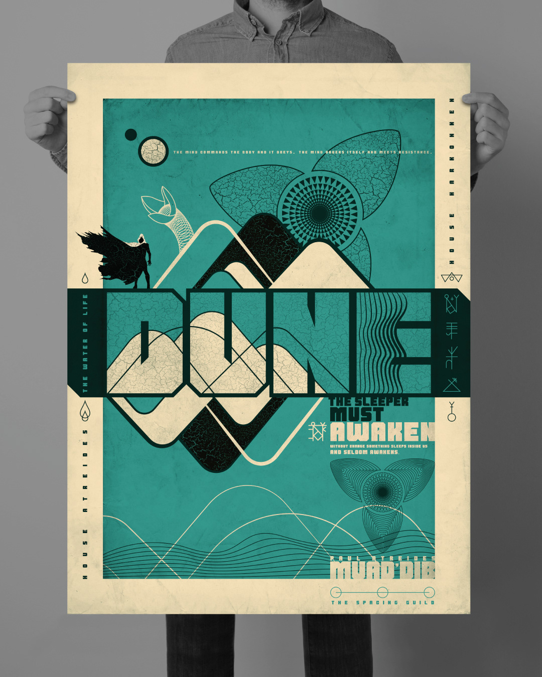 I created a ‘poster’ for Dune (novel, movie, TV mini-series, take your pick...), some time ago but was never really happy with the design, and deleted it. I decided to get back on the horse and rework it in honor of the 'upcoming' Denis Villeneuve cinematic reboot of the Frank Herbert classic. Anyway, much happier with this version, it’s always good to step away now and then.