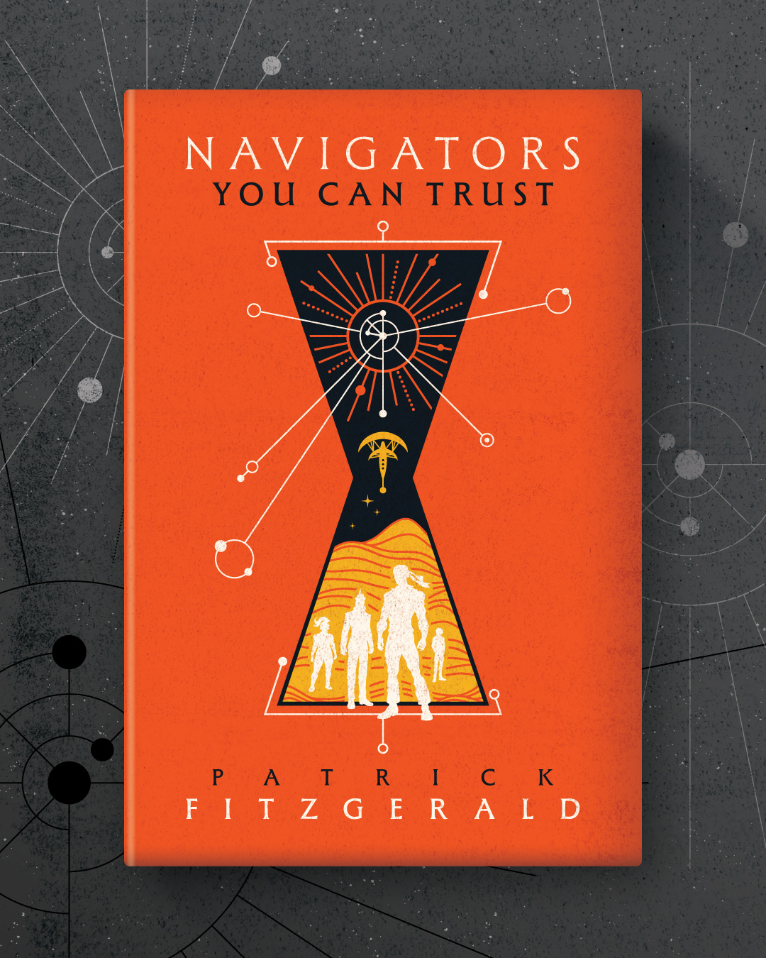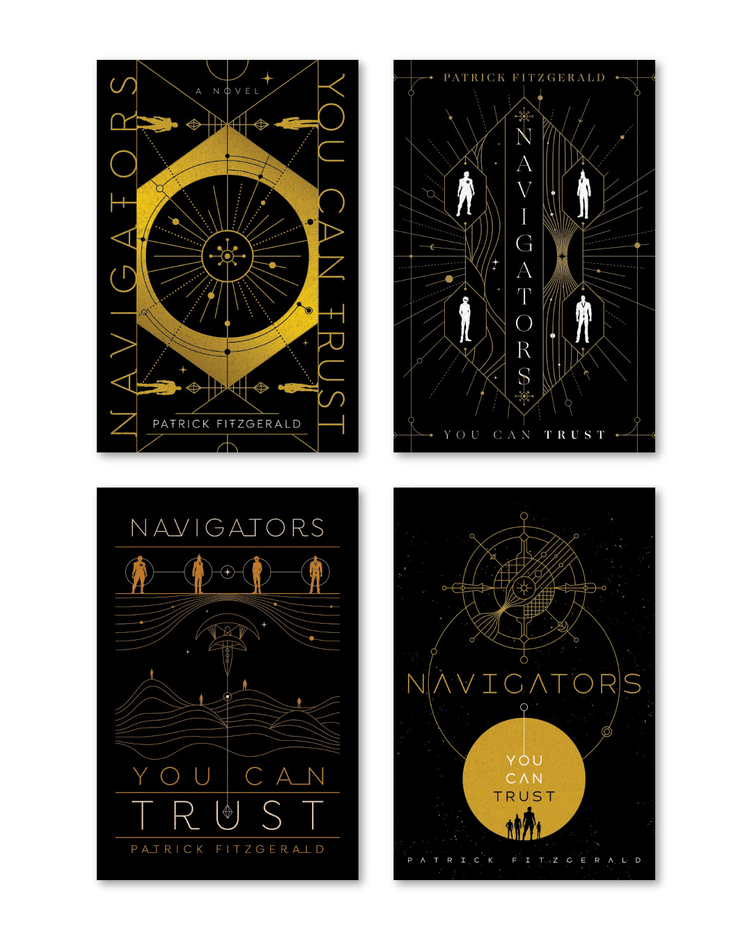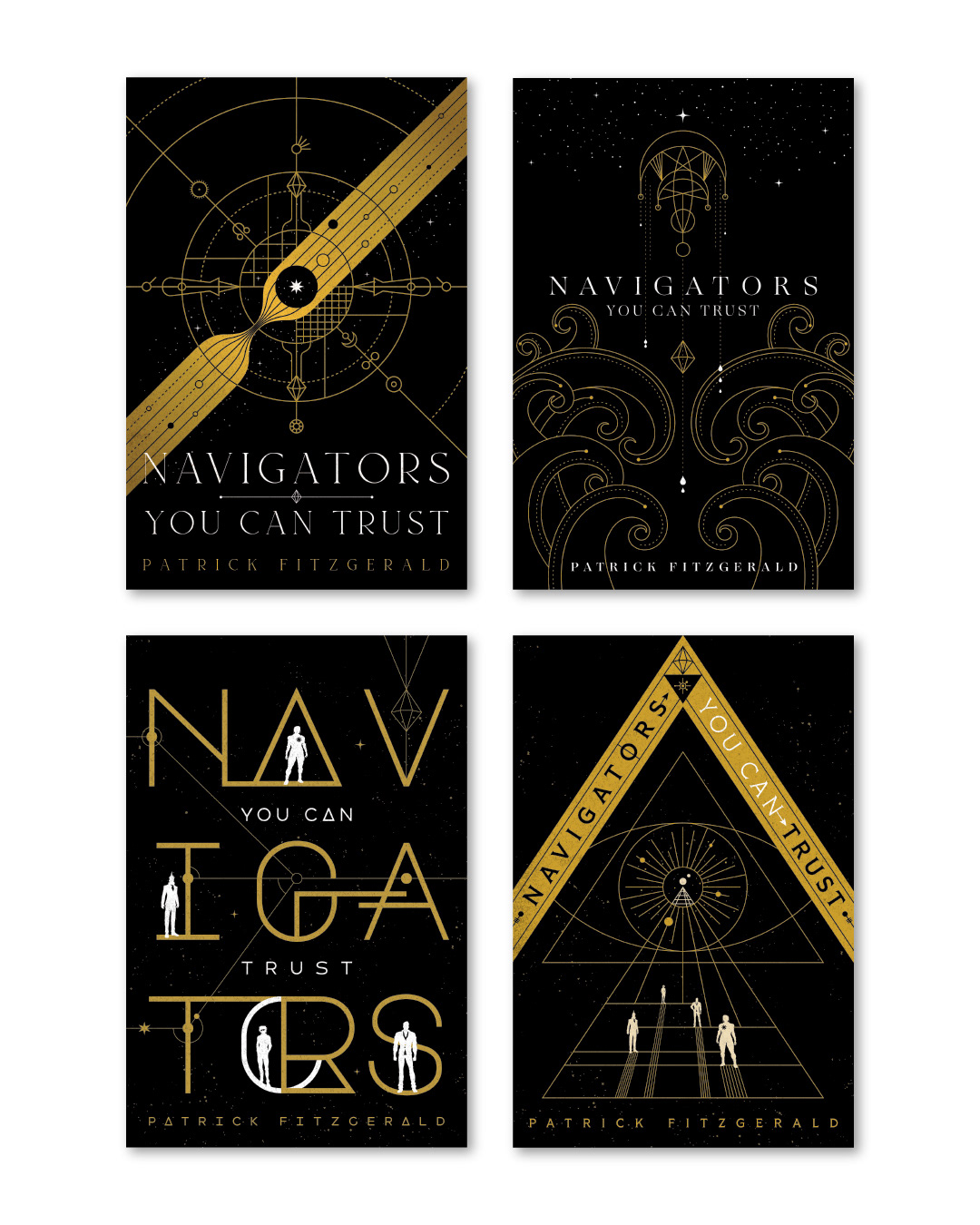 'Navigators You Can Trust' by Patrick Fitzgerald (© Podium Publishing). A cover design/illustration for Podium Publishing for the first in a series of three books: Four young adventurers, Murta, Enoch, Jezna, and Prince have been recruited to join the Navigational Brotherhood; an elite group of peacekeepers, explorers and the guardians of Archengard. But they picked a bad time to join… With the Perpetual War between the Noda and the Government starting to boil up again, and rumors that the Jackals gang has resurfaced, there’s no room for the Brotherhood to keep the neutrality it is sworn to. Our four young heroes have to find themselves and confront their own pasts and innermost secrets while contending with factions both within and without the Brotherhood. And the fate of the world of Archengard rests on whether they can, in fact, become navigators you can trust.