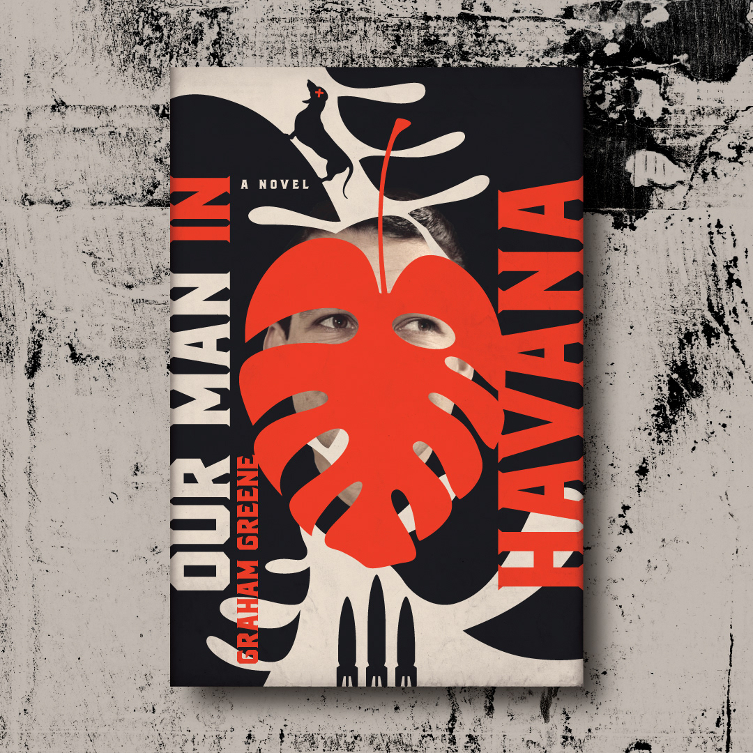 Our Man in Havana. Graham Greene (1958). Conceptual cover design for the spy classic: A penetrating espionage thriller, character study, and political satire of government intelligence. It tells the story of MI6's man in Havana, Wormold, a former vacuum-cleaner salesman turned reluctant secret agent out of economic necessity. To keep his job, he files bogus reports and dreams up military installations based on vacuum-cleaner designs. Then his stories start coming disturbingly true.