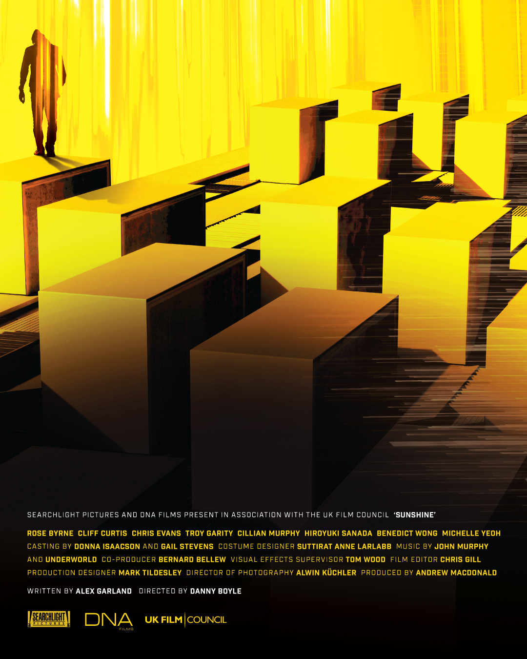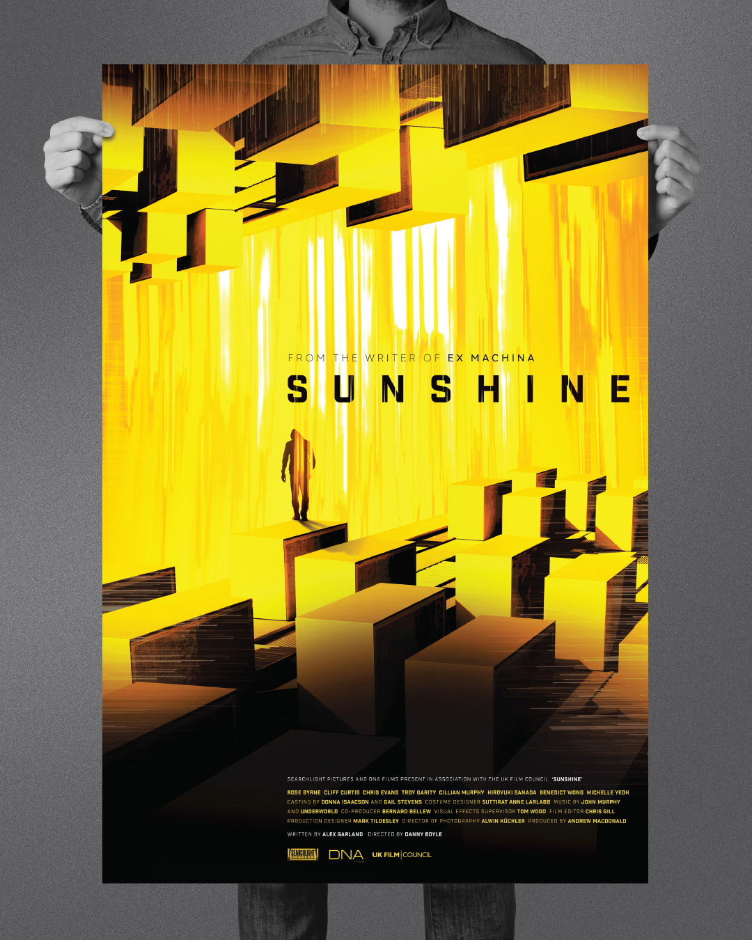 Last in my short series of Alex Garland inspired posters. Not directed by him this time (although probably would have been better if it was), but was written by him. The story of a team of astronauts/scientists trying to re-ignite the dying sun through the use of a stellar bomb using the last of Earths nuclear materials.