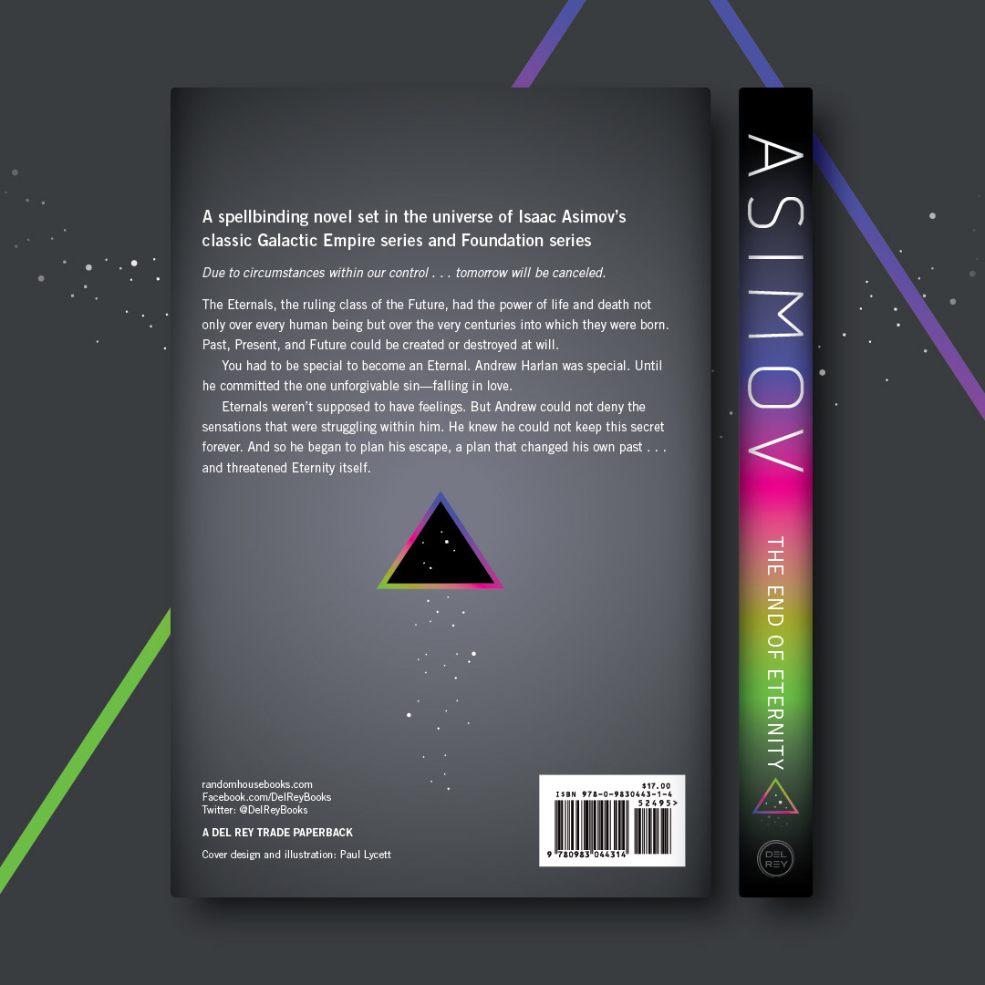 The End of Eternity by Isaac Asimov / PenguinRandomHouse / AD: David Stevenson / Design: Paul Lycett / 2020. Happy to have recently completed a series of cover redesigns of 4 early Isaac Asimov novels for Del Rey Books. Three of the covers are for the 3 books in the Galactic Empire Series, but this first one (The End of Eternity) is an outlying novel set in the same universe as the Foundation and Galactic Empire Series novels.