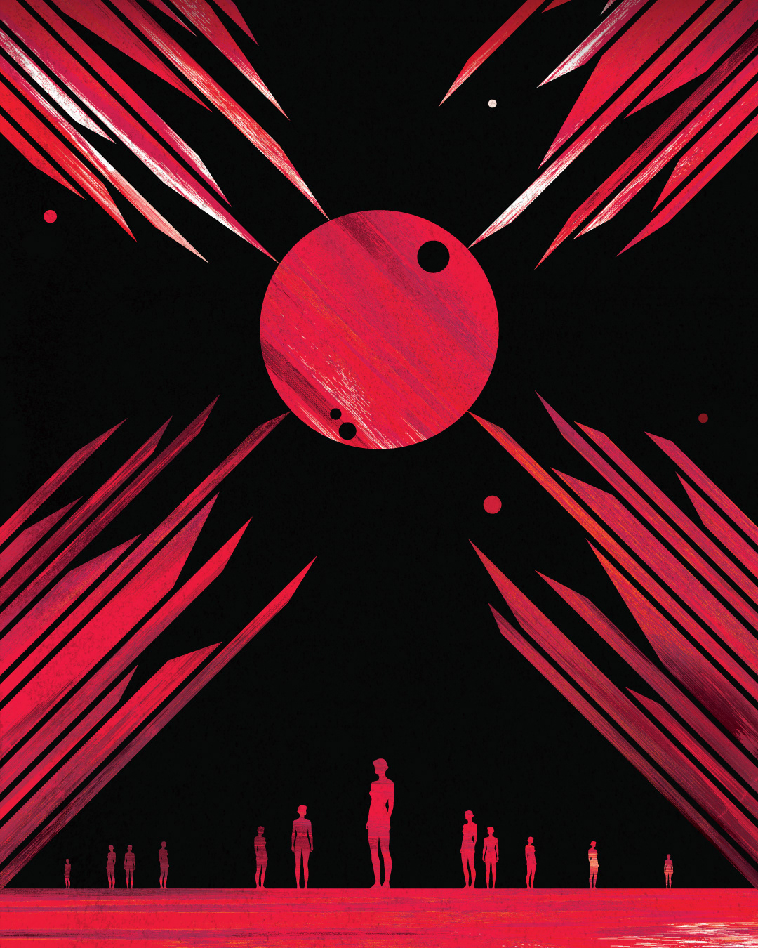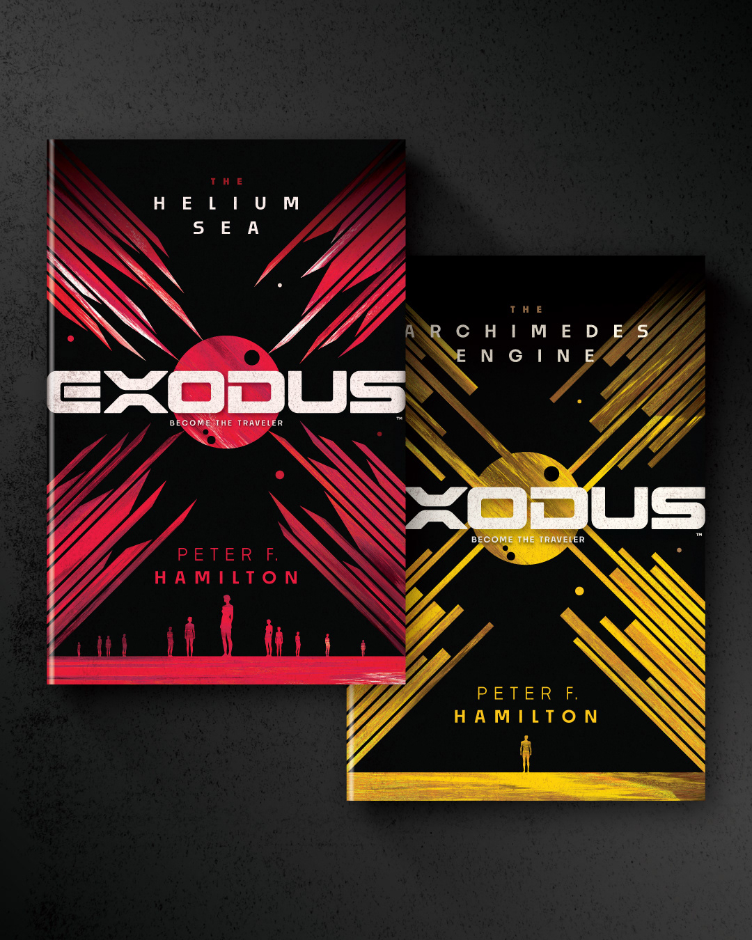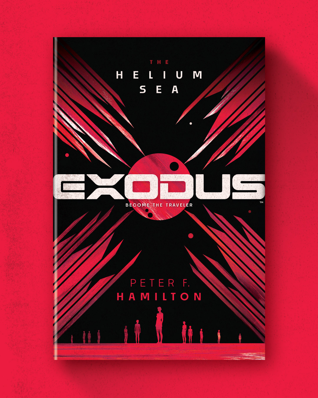 Exodus: The Helium Sea by Peter F. Hamilton. A cover design/illustration for Random House Worlds for the second in a series of two novels: For millennia, the Crown Dominion has been at relative peace, with the Celestials in control and the human population little better than serfs. But now the Crown Dominion is facing a crisis of epic proportions—one that could change the balance of power in the Centauri Cluster forever—as an exiled faction that has been waiting for seven thousand years beyond the Helium Sea has returned to claim their vengeance.