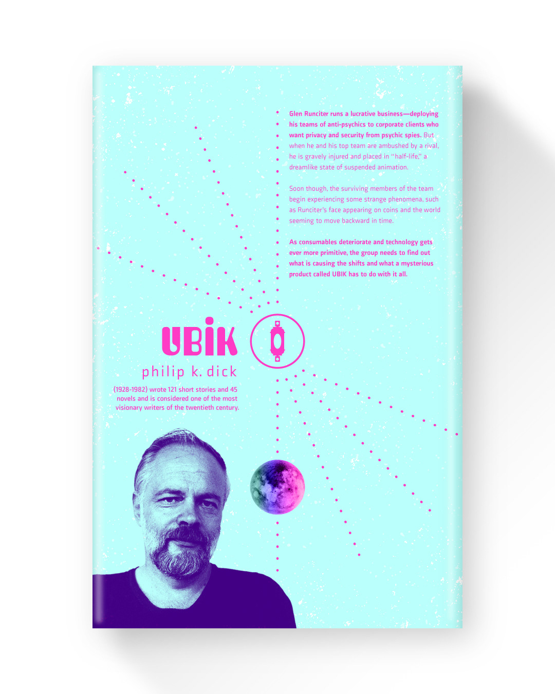Ubik by Philip K. Dick, 1969. Working on a series of PKD titles as a personal project: Glen Runciter runs a lucrative business—deploying his teams of anti-psychics to corporate clients who want privacy and security from psychic spies. But when he and his top team are ambushed by a rival, he is gravely injured and placed in “half-life,” a dreamlike state of suspended animation. As consumables deteriorate and technology gets ever more primitive, the group needs to find out what is causing time shifts and what a mysterious product called UBIK has to do with it all.